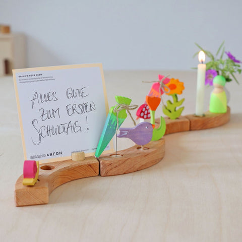 On the big day for little school starters, one thing must not be missing: the school cone! Beautifully colourful and full to the brim with delicious and great things. Matching to it there is our decorative figure school cone, which decorates the celebration ring or the celebration spiral. The two colour variants neon pink and neon green enchant with delicate colour gradients with bright highlights and wonderful details. Bright eyes and gap-toothed grins guaranteed!