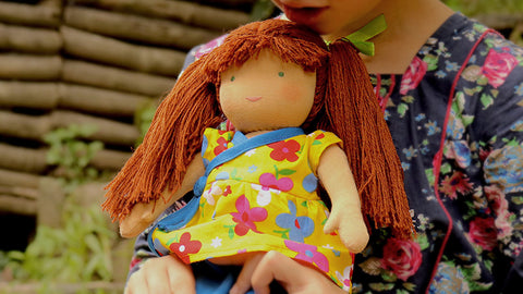 Each doll is individually handmade by one woman from beginning to end - starting with cutting, stitching and filling the doll - to finally sewing on the hair and face - giving each doll a unique personality of it's own.